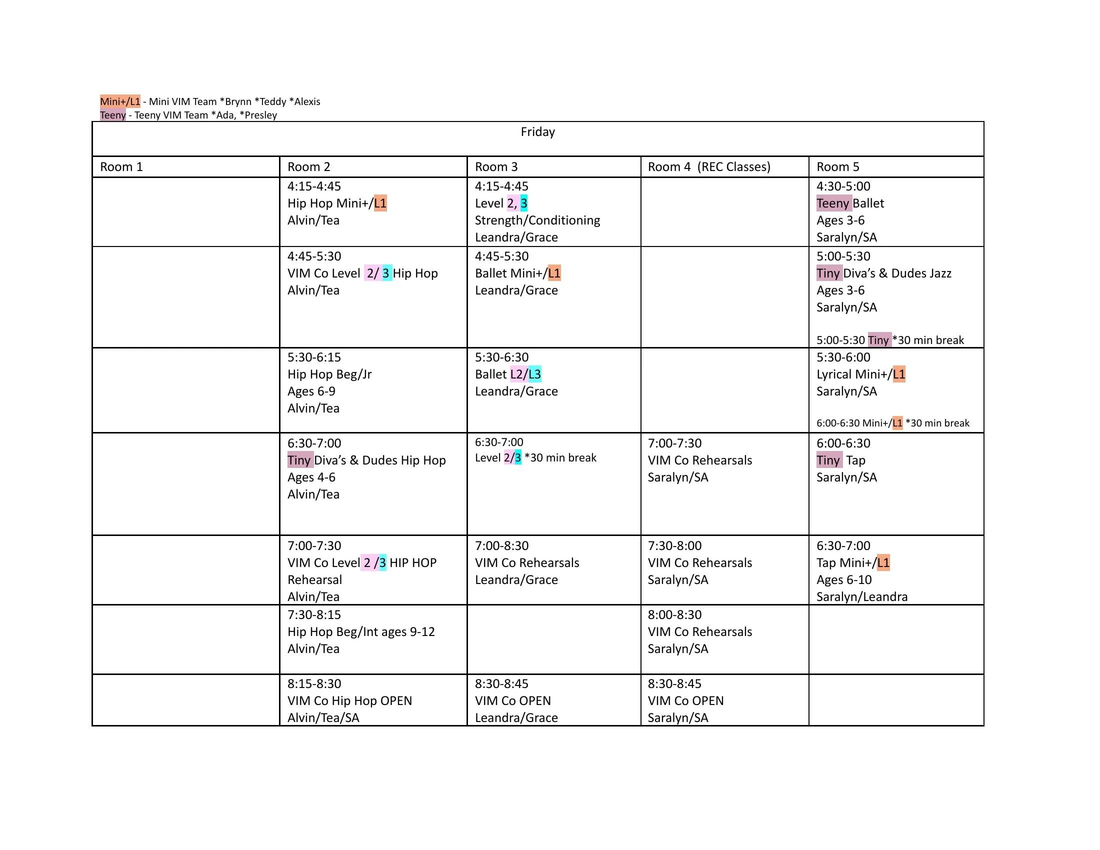 Toddler Classes each 30 minutes from 9:00-11:00 while Floor Pilates runs simultaneously for Adults. Inquire within or at Info@VIMDance.com