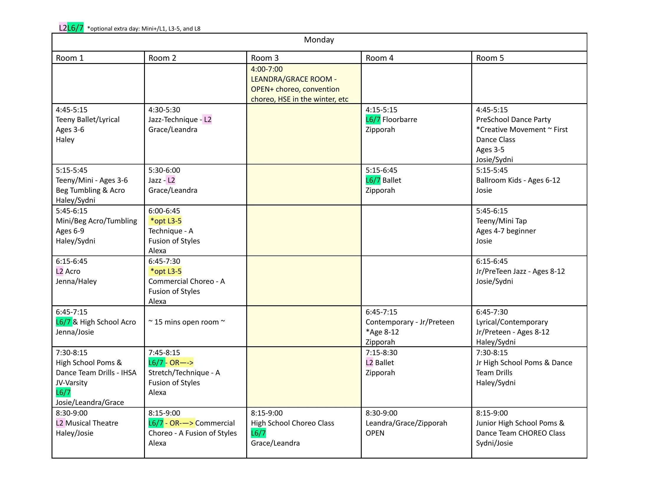 FALL Weeknights are Filled with TONS of NEW Classes! Nights this Fall are loaded with Classes for Toddlers through Dancers training for Junior High & High School Dance, Poms, Cheer Teams and beyond into college or the preprofessional dance industry!